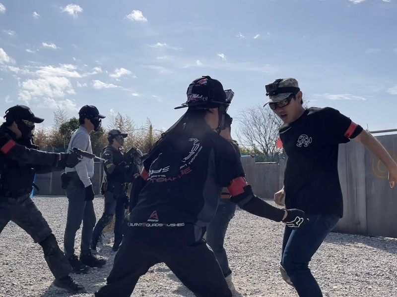 これはジャハナン氏による、互いに保護具着用の希望者だけによる有志で行われた早撃ち対決、その名も「アイサツ戦」