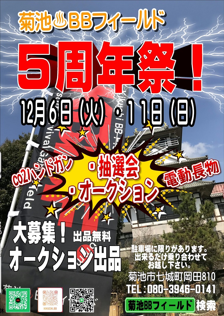 | お陰様で5周年! 当日までには全面改装完成する予定です オークション出品物、抽選賞品等随時お知らせします! 飛び込み不可。 定員に達し次第〆切ますので参加申し込みはお早目に〜 | |